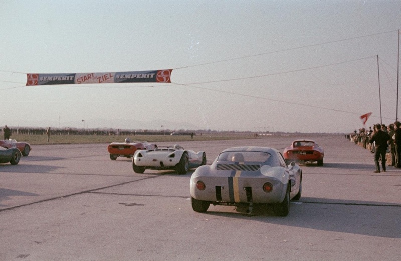 Flugplatzrennen in Aspern mit dem Abarth Lufthansa-Coupé (rechts), Pole Position Abarth 1300 OT und Abarth Spider