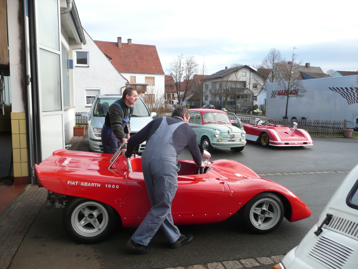 Die Abarths werden am früehen Morgen mit einem Spezialtransporter bbgeholt
